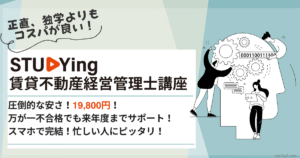 賃貸不動産経営管理士に関しては、自分で分析を行うのが難しいので、安い通信講座のスタディングを活用しましょう。