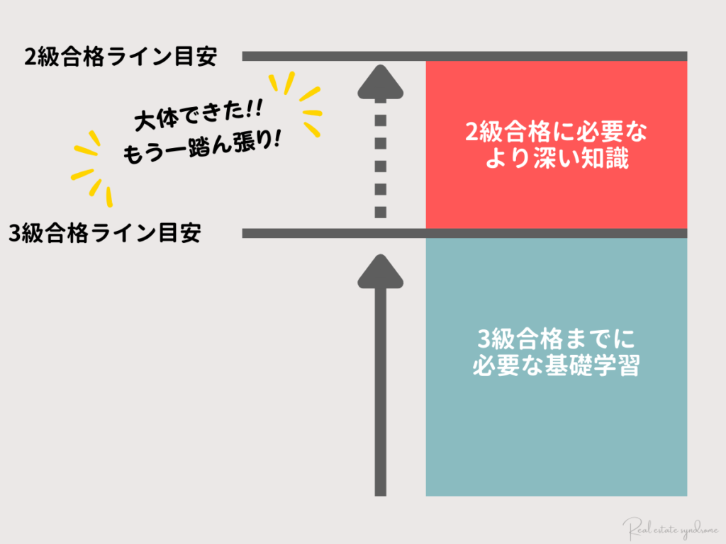 3級のために50時間勉強したら、そこから2級を目指すにはあと100時間くらい追加で勉強するイメージ!